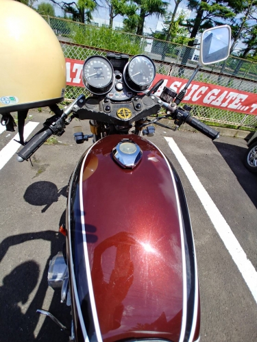 初めて見ましたGT750!ギラギラでメッチャカッコいいです^_^ 風防がやっぱり雰囲気出してますね!エンジンオーバーホールしたばかりでならしらしいですw